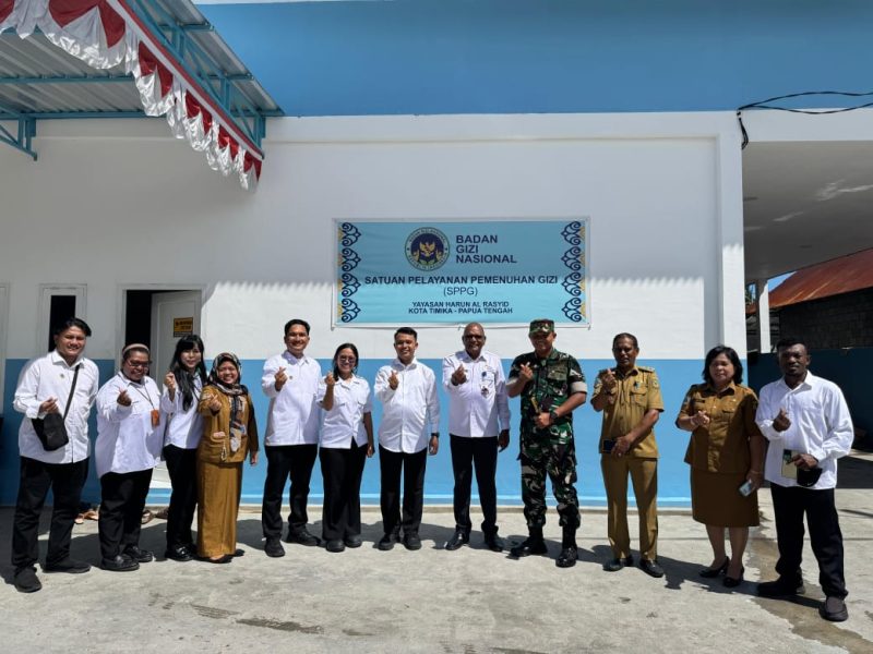 Usai acara launching, Dandim 1710/Mimika bersama Kepala BKKBN Provinsi Papua melaksanakan peninjauan lokasi SPPG Harun Alrasyid yang merupakan SPPG yang akan melaksanakan pelayanan MBG untuk 3B pertama kali di Provinsi Papua Tengah. (Pendim 1710/Mimika)