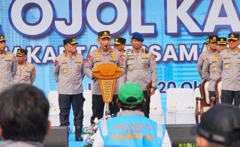 “Alhamdulillah, di momentum satu tahun Pemerintahan Bapak Presiden Prabowo dan Wakil Presiden Gibran, teman-teman komunitas ojol melaksanakan kegiatan aksi dalam bentuk Apel Ojol Jaga Kamtibmas, dengan tema ‘Jaga Jakarta Bersama Polda Metro Jaya’,” ujar Jenderal Sigit.