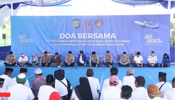 Genzanews.com, JAKARTA – Direktorat Polairud Polda Metro Jaya menggelar doa bersama, sholat gaib, dan istighosah untuk para korban bencana alam di Sumatra. Kegiatan berlangsung khidmat di Lahan Parkir Pelelangan Ikan Muara Angke, Senin (1/12/2025), sekaligus menjadi rangkaian peringatan HUT Polairud ke-75 bertema “Polairud Presisi Menuju Indonesia Maju.”