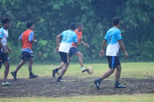 Hampir setiap sore, usai menyelesaikan kegiatan fisik pembangunan, para personel Satgas TMMD meluangkan waktu untuk berolahraga bersama warga. Kali ini, pertandingan sepak bola dipilih sebagai wadah mempererat silaturahmi serta menumbuhkan semangat sportivitas dan kekompakan di kalangan pemuda desa.