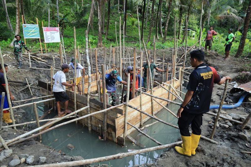 GENZA NEWS – Tidore Kepulauan – Satgas TMMD ke-126 Kodim 1505/Tidore terus menunjukkan kepeduliannya terhadap kebutuhan dasar masyarakat. Kali ini, Satgas TMMD melaksanakan pembangunan sumur air bersih di Desa Tagalaya, Kecamatan Oba Selatan, Kota Tidore Kepulauan, Sabtu (18/10/2025). Pembangunan sumur air bersih ini merupakan salah satu sasaran fisik TMMD yang sangat dinantikan warga. Air yang dihasilkan nantinya akan ditampung dalam bak penampungan utama, kemudian disalurkan ke seluruh pemukiman warga untuk memenuhi kebutuhan sehari-hari seperti memasak, mandi, dan mencuci.